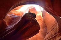 Sommige bouwwerken in de Upper Antelope Canyon bij de stad Page in Arizona, VS, zijn zo ingenieus dat het moeilijk is om erachter te komen hoe ze zijn ontstaan. Het is ook leuk om te proberen er iets in te zien. Met een beetje fantasie zagen we een reusachtige vuist uitsteken.