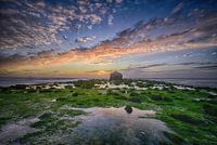 Uitstroomkoepel voor de kust van Monster in Zuid-Holland tijdens zonsondergang.