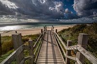 Een leeg strand, dreigende wolkenluchten, harde wind, de zon die de laatste stralen over het strand laat glijden...even je hoofd leegmaken, even een rustpunt bovenaan de trap in de duinen.