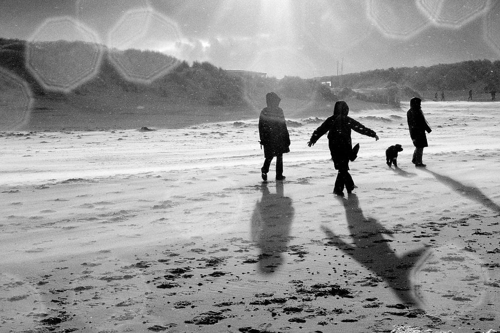 Tegenlicht, sneeuw en hagel op het strand van Texel.