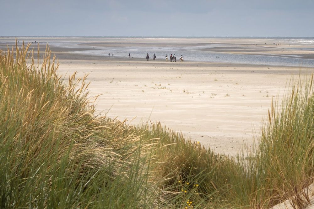 Elementen: Duinen, helmgras, strand, zee, ruiters