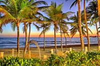 Uitzicht door de palmbomen Cabarete Beach in april 2022 bij zonsopgang