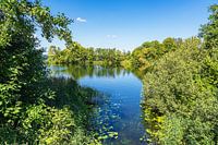 Uitzicht met meer en bomen in Stintenburg aan de Schaalsee.