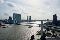 Foto met prachtig uitzicht over de Nieuwe Maas en de Erasmusbrug in Rotterdam. Een hoogtefoto met uitzicht over Rotterdam