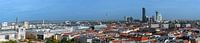 Panoramisch uitzicht vanaf het reuzenrad in het Weense Prater in noordelijke richting naar de horizon, Oostenrijk