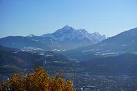 Uitzicht op Innsbruck en de Serles in de herfst (Tirol, Oostenrijk)