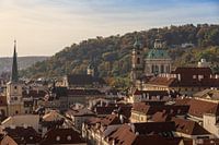 Een deel van het uitzicht op Praag vanaf het kasteel met zijn ontelbare prachtige kerken