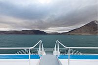 Met de boot naar Pyramiden vanaf Longyearbyen, Spitsbergen. In de verte ligt Pyramiden.