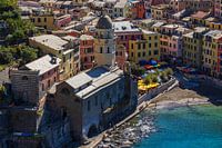 Gezicht op Vernazza aan de Middellandse Zeekust in Italië.