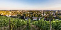 Uitzicht vanaf de Neroberg over wijngaarden naar de stad Wiesbaden in Hessen, Duitsland
