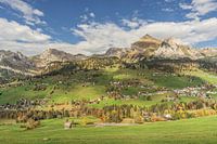 Uitzicht op het dorp Wildhaus-Alt-St. Johann, het Alpstein-gebergte met de Säntis en de Wildhauser Schafberg. Herfstsfeer in Toggenburg in het kanton St. Gallen in Zwitserland.