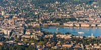 Uitzicht vanaf de Uetliberg naar het centrum van Zürich en het meer van Zürich.