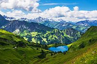 Uitzicht op de Alpen en de Seealpsee vanaf de Nebelhorn bij Obersdorf.
