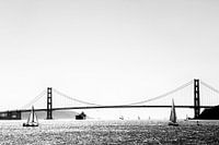 Uitzicht op de Golden Gate Bridge tijdens een boottocht met een veerboot vanuit de haven van San Francisco, Californië, Verenigde Staten van Amerika, VS.