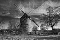 Uitzicht op de Hollaender Turmwindmuehle in Neuplatendorf in de late herfstzon
