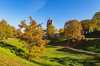 Uitzicht op de Kröpeliner Tor in de Hanzestad Rostock in de herfst.