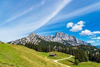 Gezicht op de Litzlalm met hut in Oostenrijk.