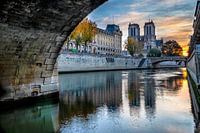 Vanonder de Pont Saint-Michel in Parijs heb je een prachtig zicht op de Notre Dame bij zonsopgang.