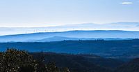 Het lijkt alsof de bergen tegen elkaar aan gedrukt zijn, de kleuren zijn teer en mooi.
