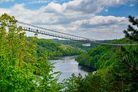 Uitzicht op de Rappbode Dam met de Titan RT hangbrug in het Harz gebergte