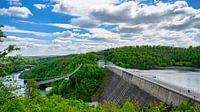 Uitzicht op de Rappbode Dam met de Titan RT hangbrug in het Harz gebergte