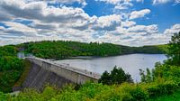 Uitzicht op de Rappbode Dam met de Titan RT hangbrug in het Harz gebergte