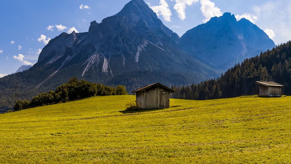 Uitzicht op de Sonnenspitze in de Tiroler Zugspitz Arena, zonnige herfstdag
