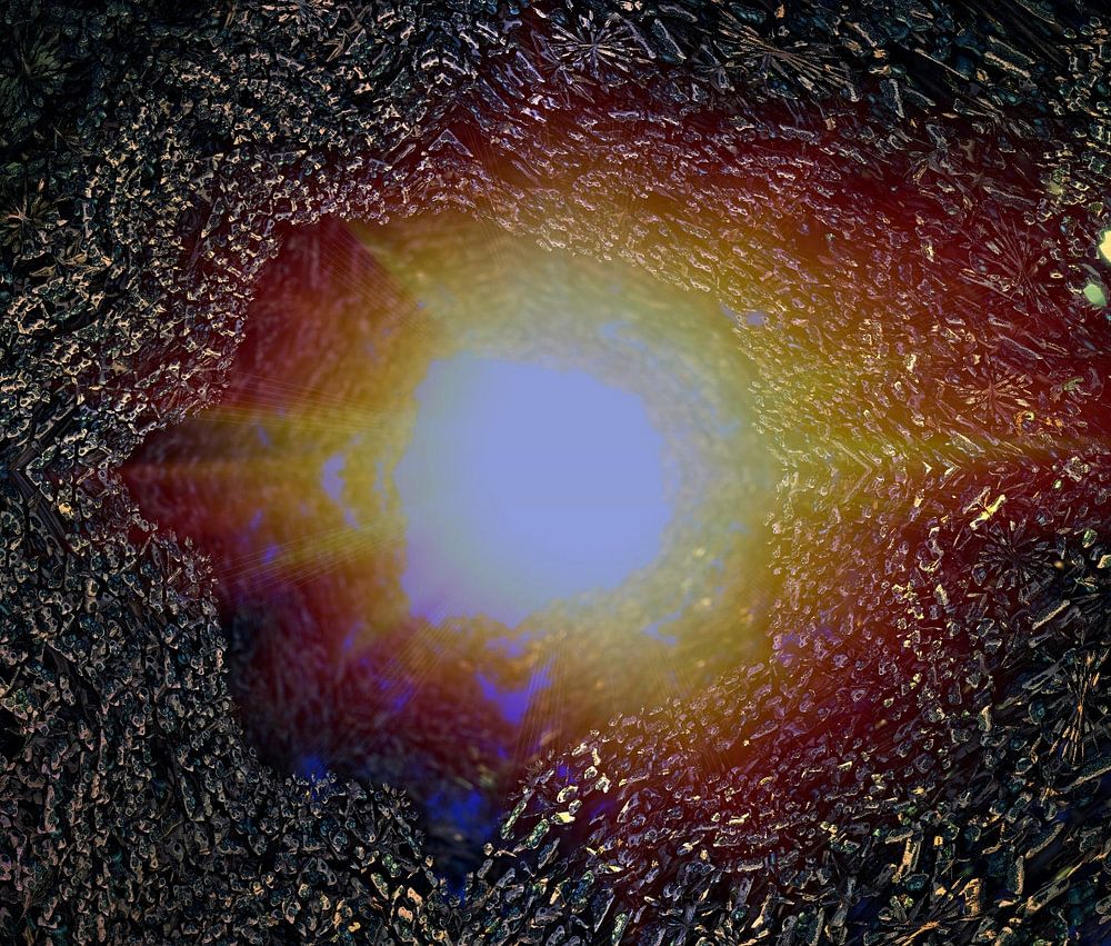 Zicht op de supernova, 3d-fractal-grafiek, deel van een reusachtige fractal volgens de Mandelbrot-vergelijkingen, berekend met het programma Mandelbulb 3D
