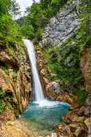 Uitzicht op de Tschaukofall waterval bij Ferlach in Oostenrijk