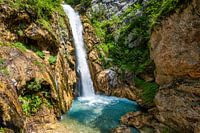 Uitzicht op de Tschaukofall waterval bij Ferlach in Oostenrijk