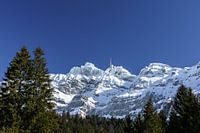 Een schilderachtig winterlandschap in de Appenzeller Alpen met uitzicht op de Säntis in het kanton Appenzell Ausserrhoden, Zwitserland