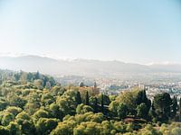 Over ‘Uitzicht op de besneeuwde bergen van Sierra Nevada vanaf het Alhambra in Granada, Spanje.’ van Raisa Zwart Reisfotografie Prints