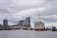 Koop de foto Uitzicht op de haven van Hamburg van Rolf Schnepp als print op canvas, aluminium dibond, (ingelijste) fotoprint, behang en ArtFrame. Voor jou op maat geprint in Fine-Art kwaliteit.