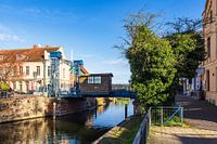 Uitzicht op de historische hefbrug in de stad Plau am See.