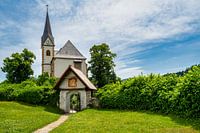 Gezicht op het oeverlandschap en de kerken van Maria Woerth aan de Woerthersee