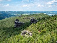 Uitzicht op de klimrots Große Hunskirche in het Elbezandsteengebergte