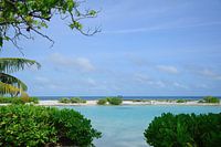 Prachtig uitzicht op de lagune naast onze overwatervilla in het Holiday Inn resort op Kandooma Fushi op de Malediven. De kleur is gewoon betoverend.