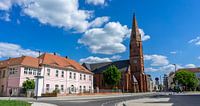 Uitzicht op de oude stad Dessau met de katholieke kerk St. Peter en Paul Stad Dessau-Roßlau, Saksen-Anhalt Duitsland