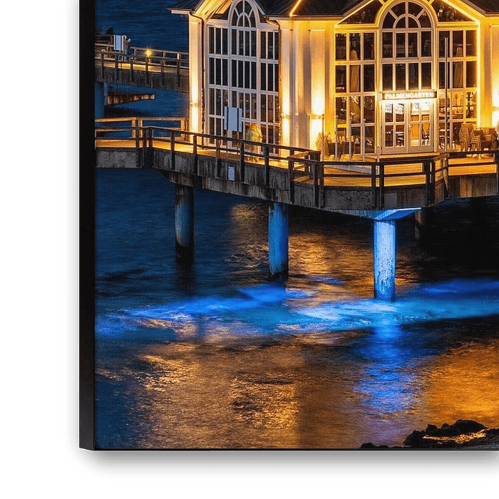 Uitzicht op de pier in Sellin aan de Baltische Zee bij nacht