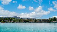 Uitzicht op de promenade langs het meer in Velden am Woerthersee in Oostenrijk