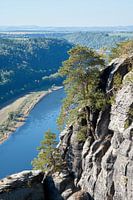 Uitzicht op de rivier de Elbe vanaf een uitkijkpunt op de rotsen van de Bastei in het Elbezandsteengebergte in de Sächsische Schweiz