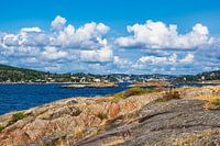 Uitzicht op de stad Arendal in Noorwegen vanaf het eiland Merdø.