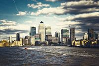 De Londense skyline met wolkenkrabbers aan de oevers van de Theems in stedelijke look