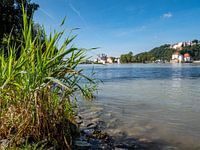 Uitzicht op de stad Passau vanaf de oever van de rivier de Inn