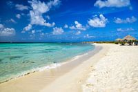 Een panoramisch uitzicht op Arashi Beach op het eiland Aruba in het Caribisch gebied