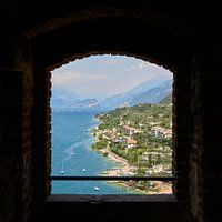 Koop de foto Uitzicht op het Gardameer door het raam van Heiko Kueverling als print op canvas, aluminium dibond, (ingelijste) fotoprint, behang en ArtFrame. Voor jou op maat geprint in Fine-Art kwaliteit.