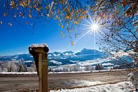 Het uitzicht in het bovenste Ennsdal met zonneschijn over Flachau