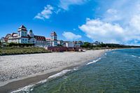 Uitzicht op het kuurgebouw in Binz vanaf de pier richting de Baltische Zee.