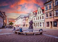 Uitzicht op het marktplein in het oude centrum van Döbeln in Saksen