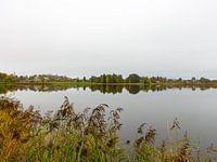 Een rustig, bijna minimalistisch beeld van de Bayersoier See in Opper-Beieren. De dichte mist gloeit zachtjes op en brengt de kleuren van de herfst prachtig naar voren. De bomen en het dorp Bad Bayersoien worden magisch weerspiegeld in het stille water. Herfstkleurige grassen omzomen de oever en wiegen zachtjes in de wind.